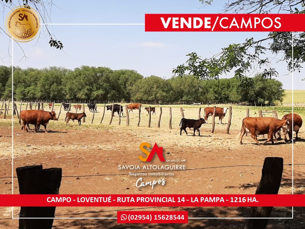 SAVOIA ALTOLAGUIRRE VENDE CAMPO ganadero de 1216 ha sobre ruta 14. Loventué, La Pampa