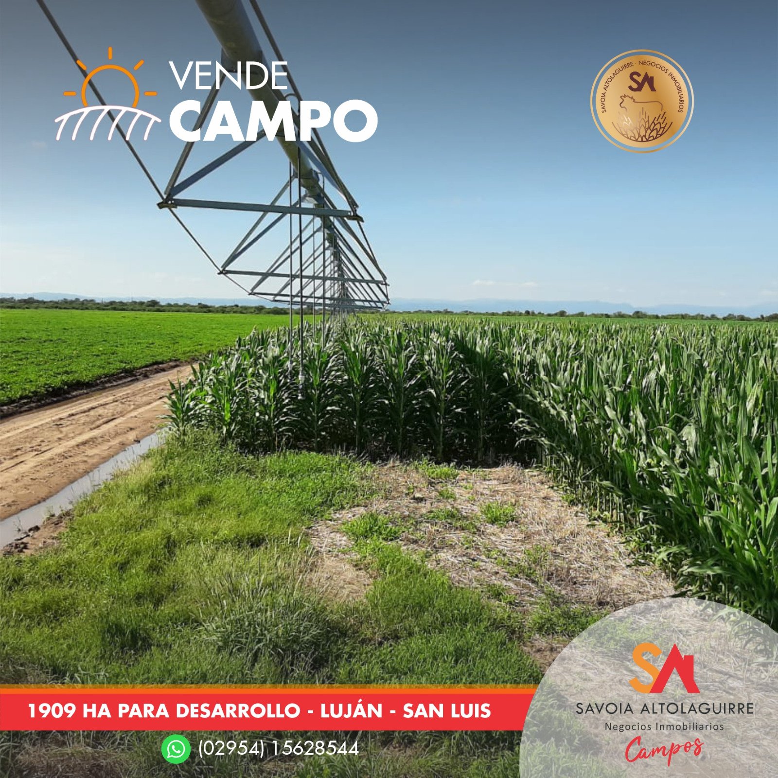 VENDE: CAMPO PARA DESARROLLAR CON RIEGO de 1.909 hectáreas en Luján, depto Ayacucho, San Luis