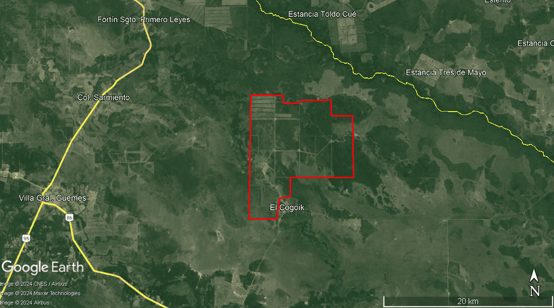 EXCELENTE CAMPO GANADERO DE 14.000 HAS EN PATIÑO – Localidad: Villa General Güemes – Patiño – FORMOSA – Descripción: Ubicado al Noroeste del Paraje “El Cogoik”, a unos 15 km al Noreste de la Ruta Nac.Nº 86. Entre las localidades de Gral. Belgrano y Gral. Güemes.