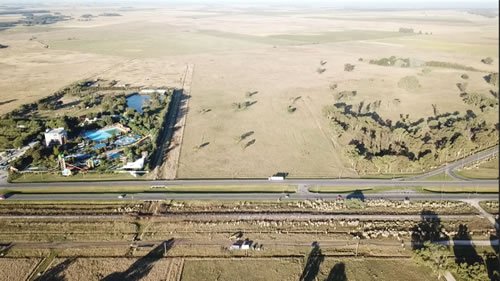 En estratégica ubicación frente a rotonda principal de cruce de autopista e intersección con ruta de acceso a la ciudad de Santa Clara del Mar. Lindero a Parque Acuático.