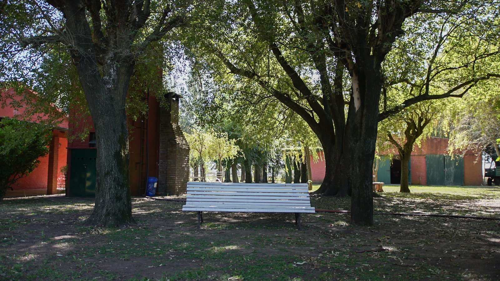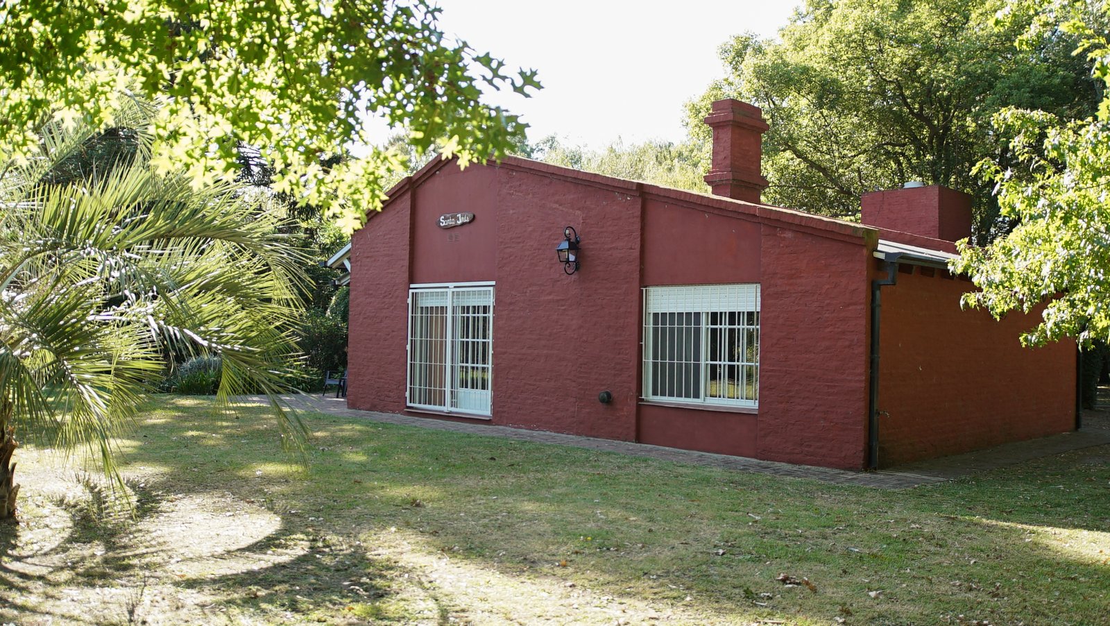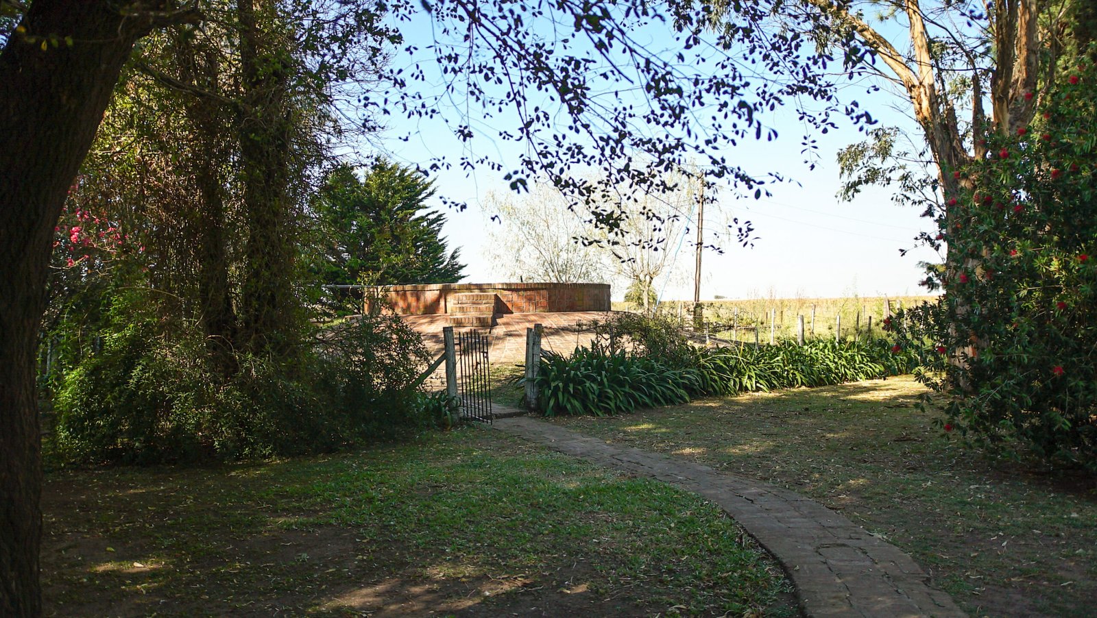 Posee un ingreso principal al casco del campo con boulevard de casuarinas y palmeras.